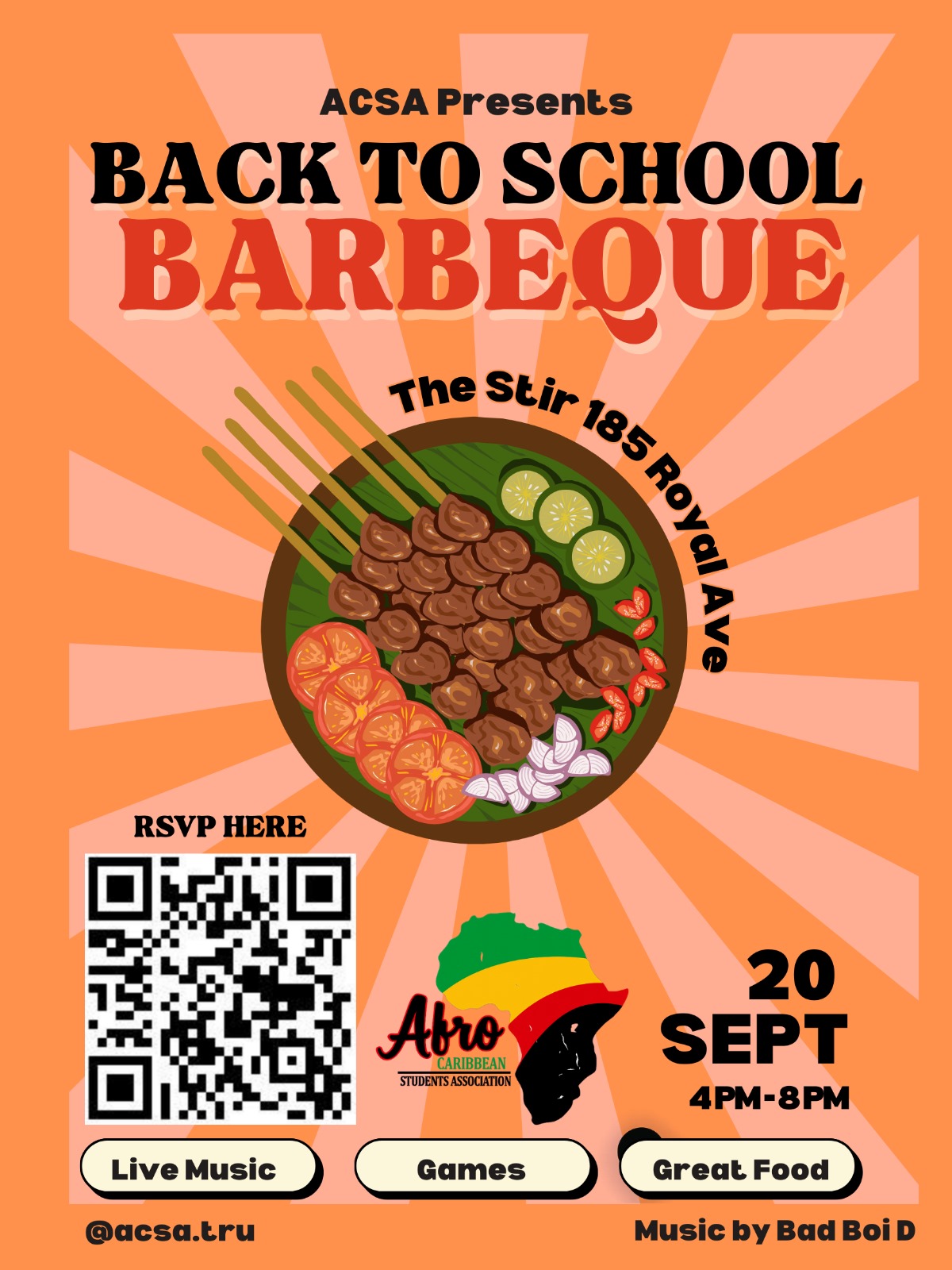 Hey Tribe! To kick off the school year, ACSA is hosting a Back-to-School Barbecue, and we want you there! 🎉 Come enjoy an afternoon of music, great food, and good vibes with friends. 🍔🎶 Don’t meet us there, beat us there! |